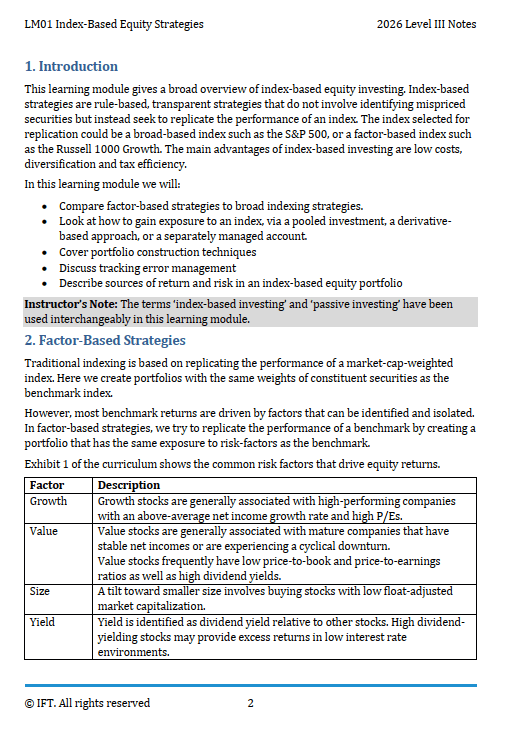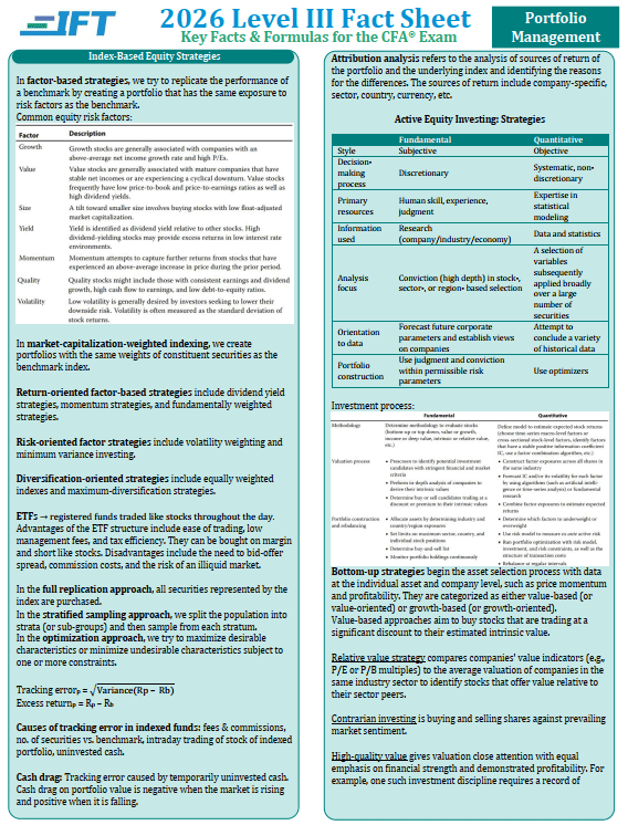2026 CFA Level 3 IFT Study Notes, Formula Sheet Portfolio Management Pathway