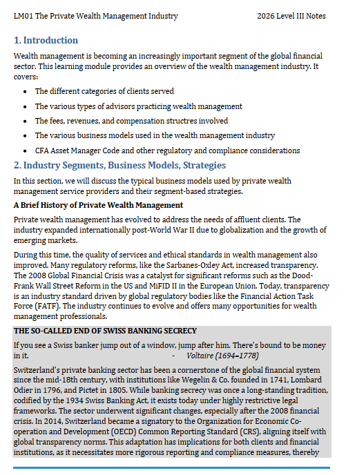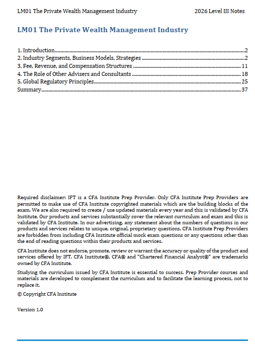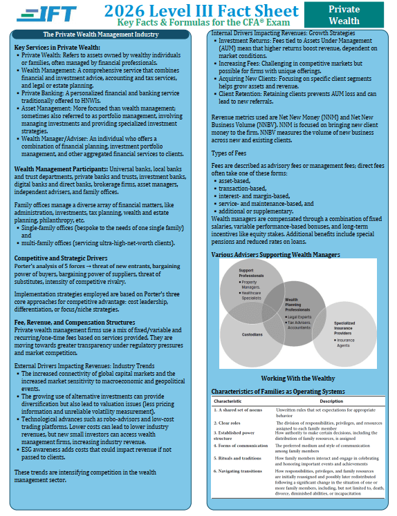 2026 CFA Level 3 IFT Study Notes, Formula Sheet Private Wealth Pathway